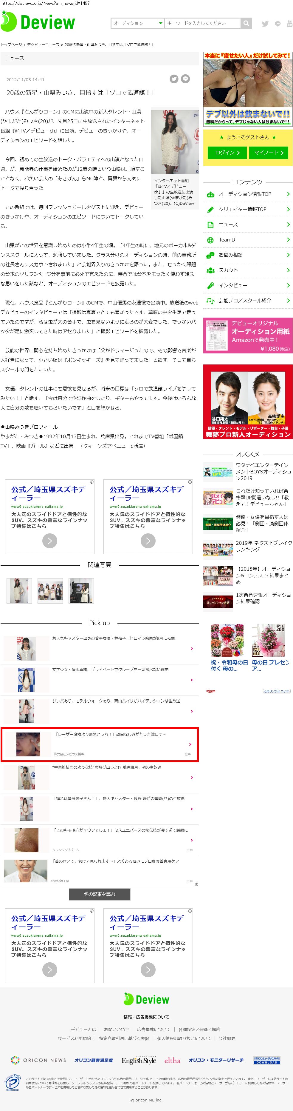 Webメディア 広告枠に赤枠付き