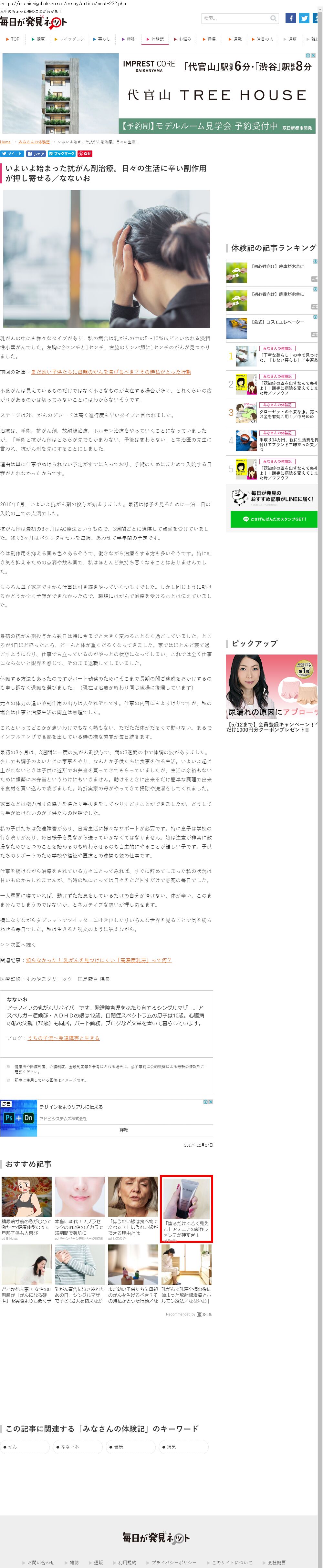 Webメディア 広告枠に赤枠付き