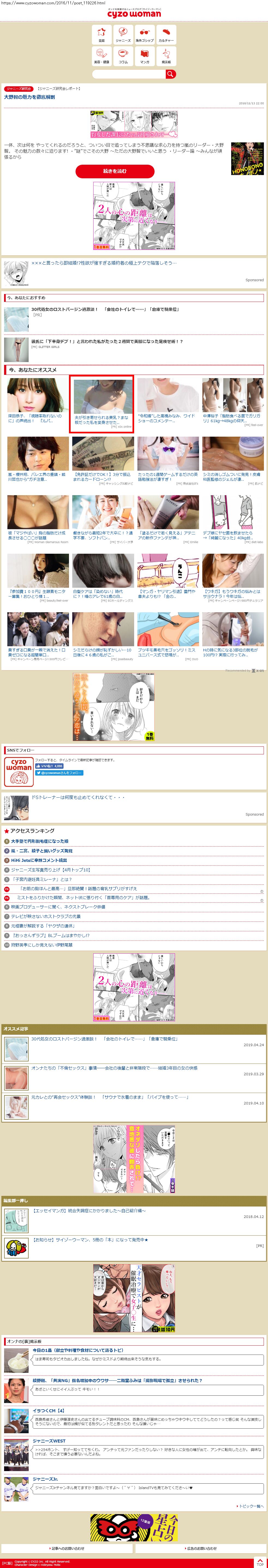Webメディア 広告枠に赤枠付き