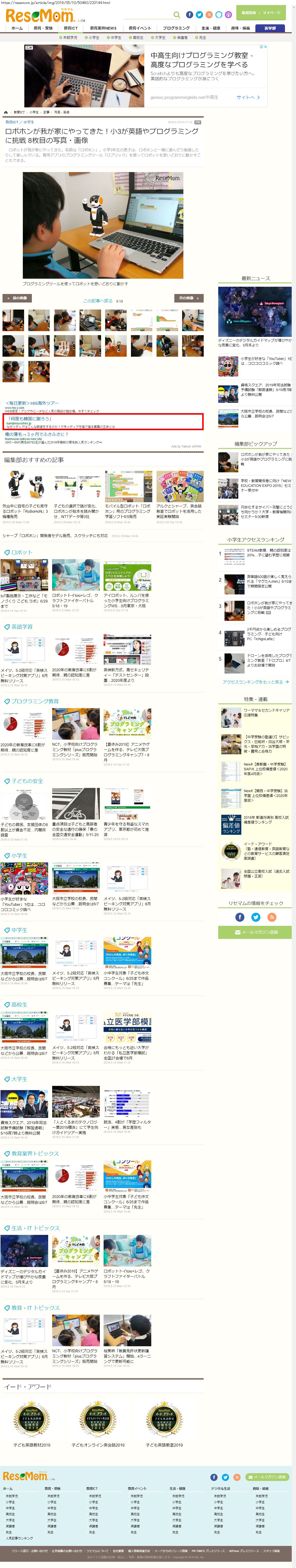 Webメディア 広告枠に赤枠付き