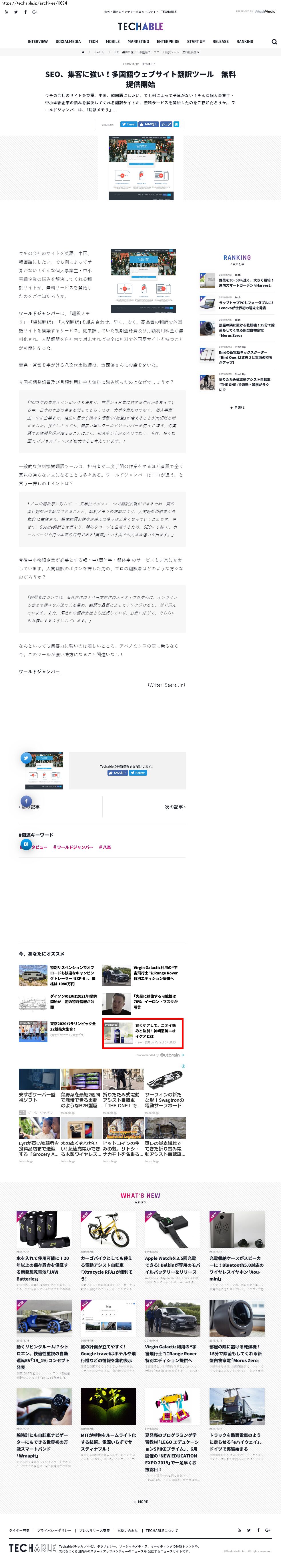 Webメディア 広告枠に赤枠付き