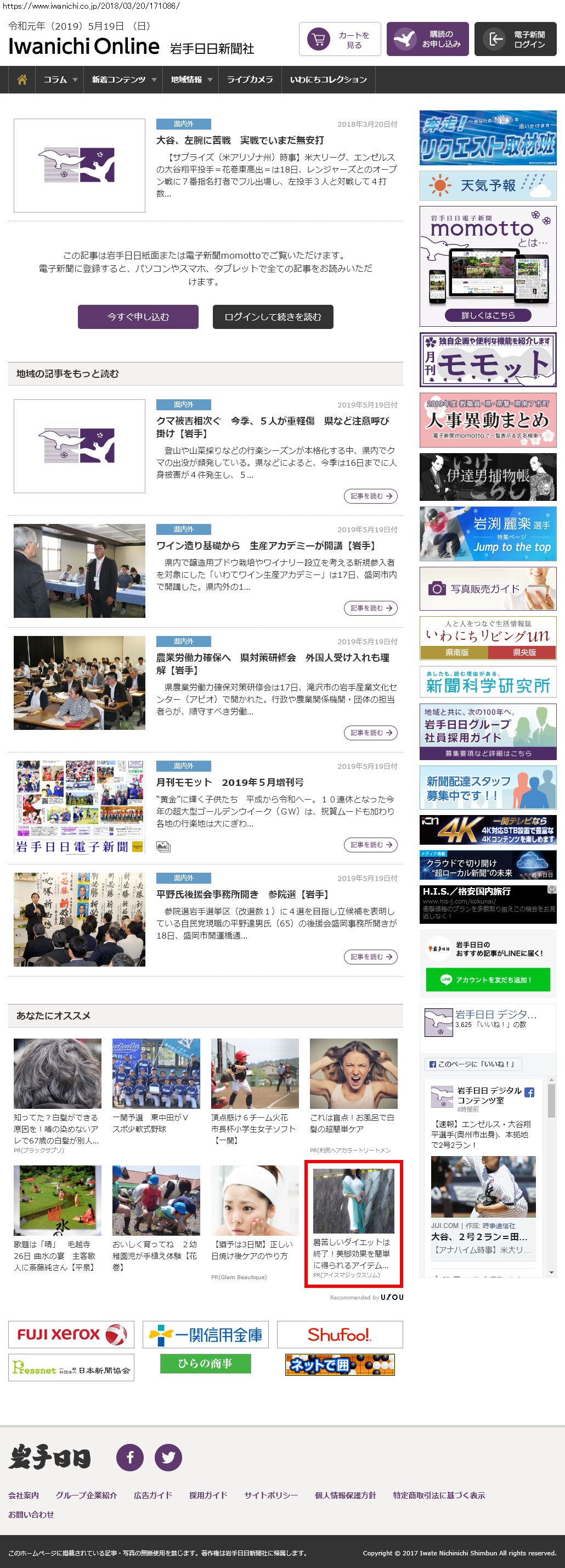 Webメディア 広告枠に赤枠付き