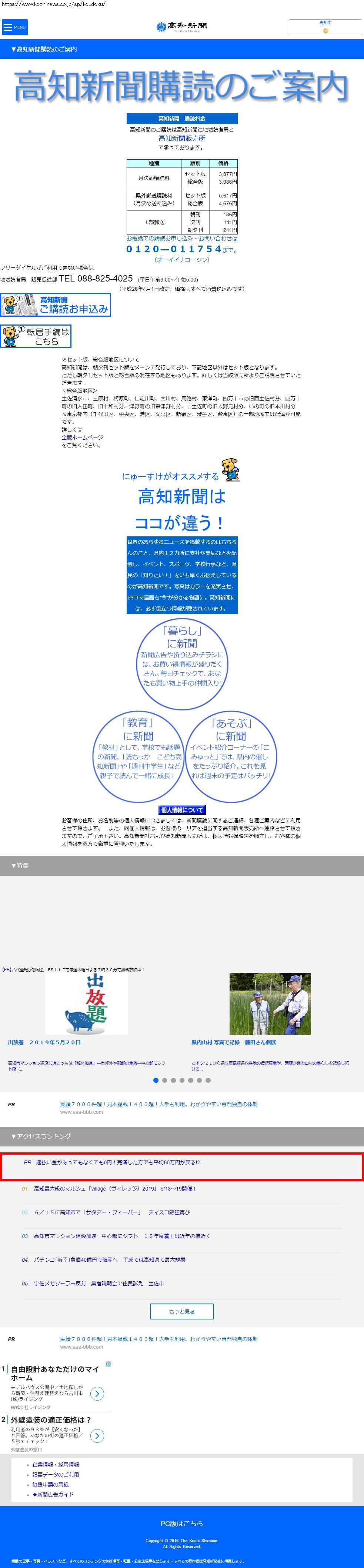 Webメディア 広告枠に赤枠付き