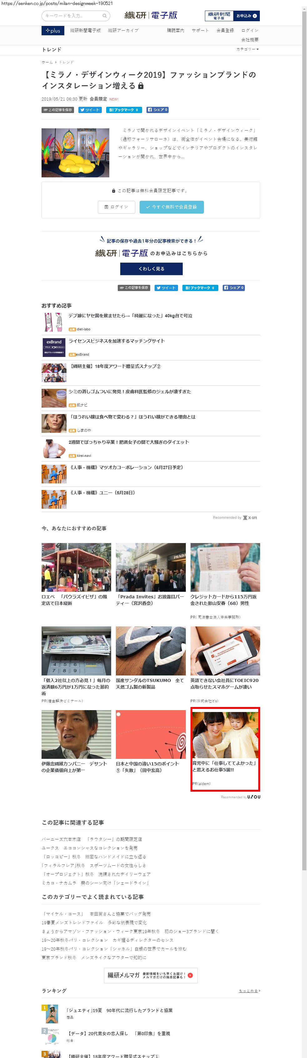 Webメディア 広告枠に赤枠付き