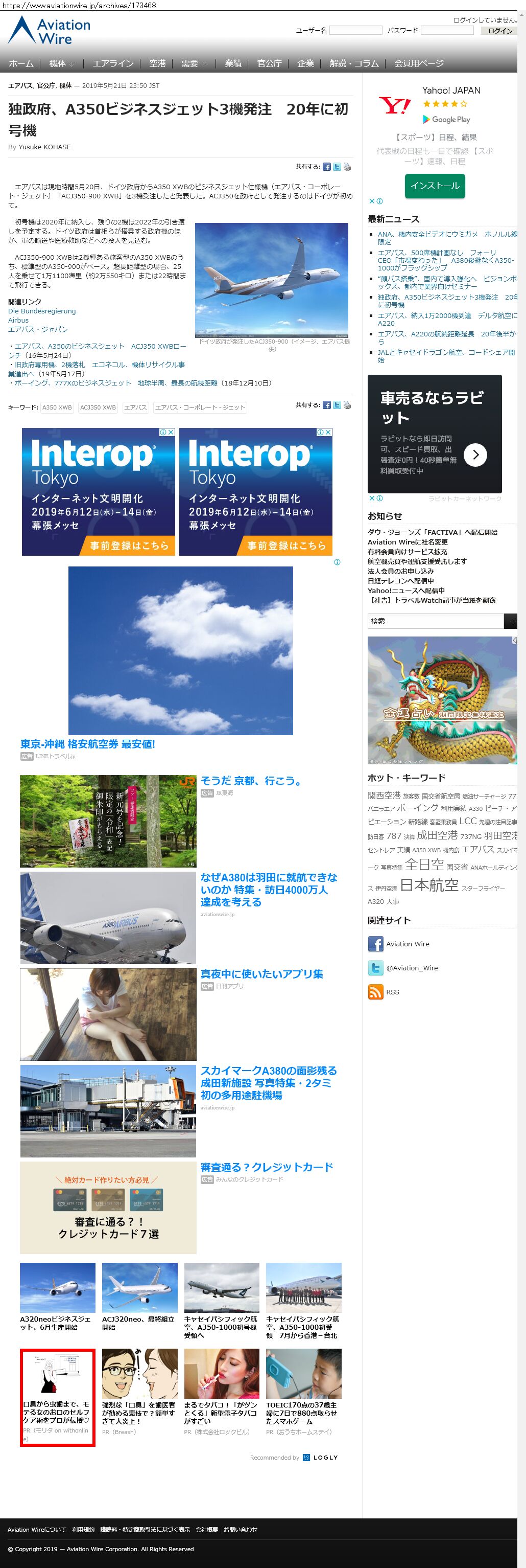 Webメディア 広告枠に赤枠付き