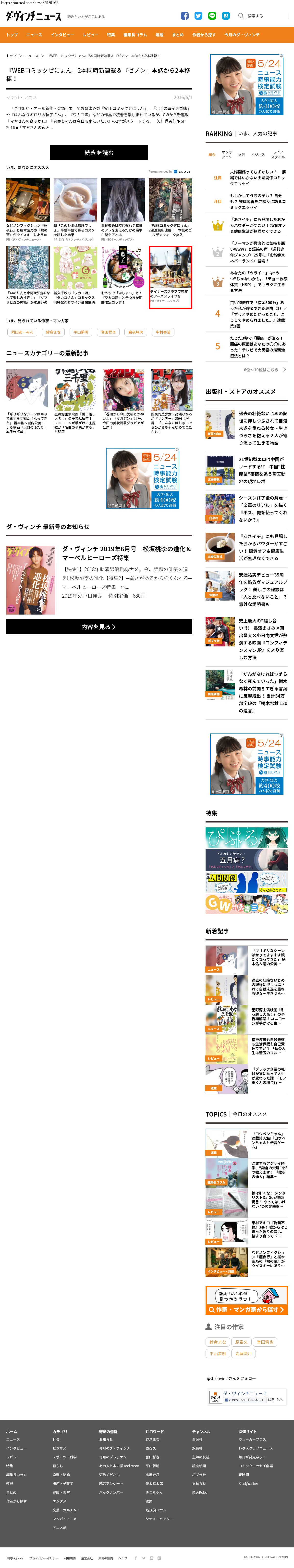 Webメディア 広告枠に赤枠付き