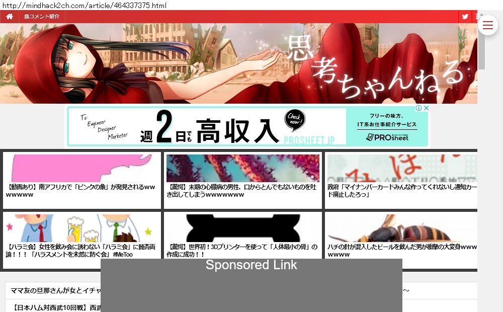 Webメディア 広告枠に赤枠付き