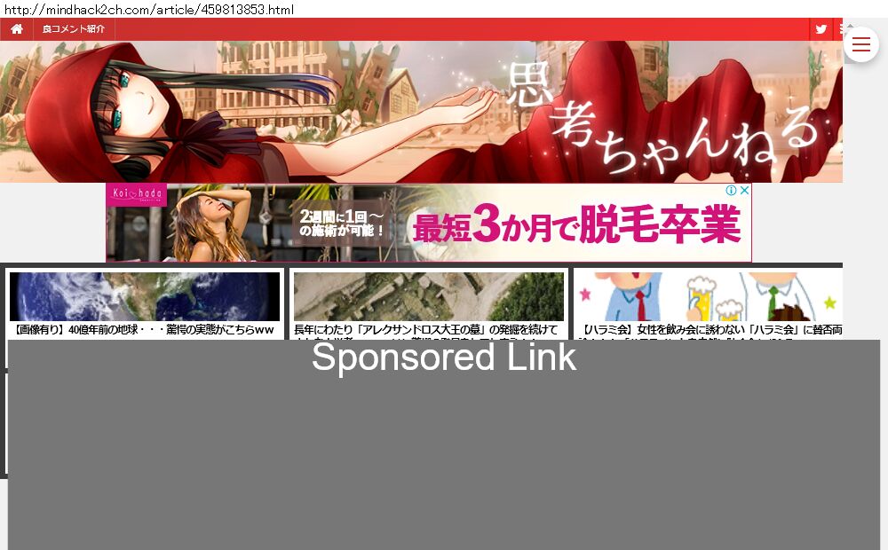Webメディア 広告枠に赤枠付き