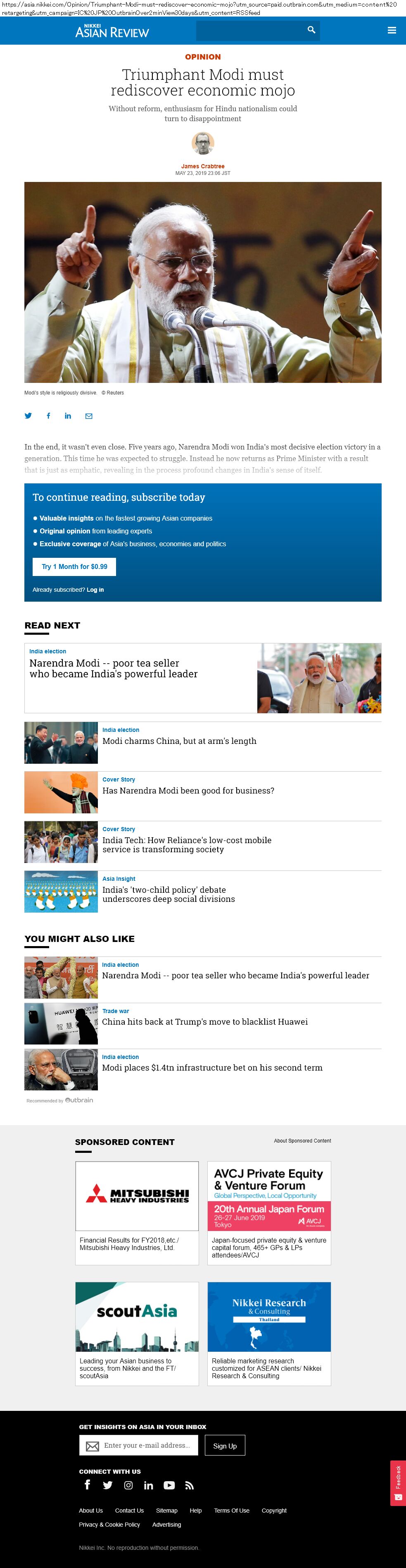 outbrain かつ asia.nikkei.com でガチャ