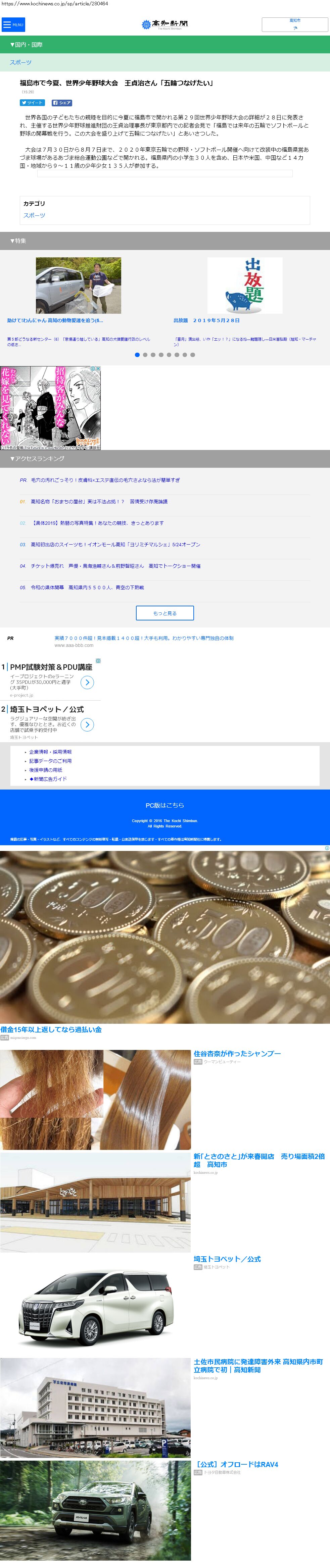 Webメディア 広告枠に赤枠付き