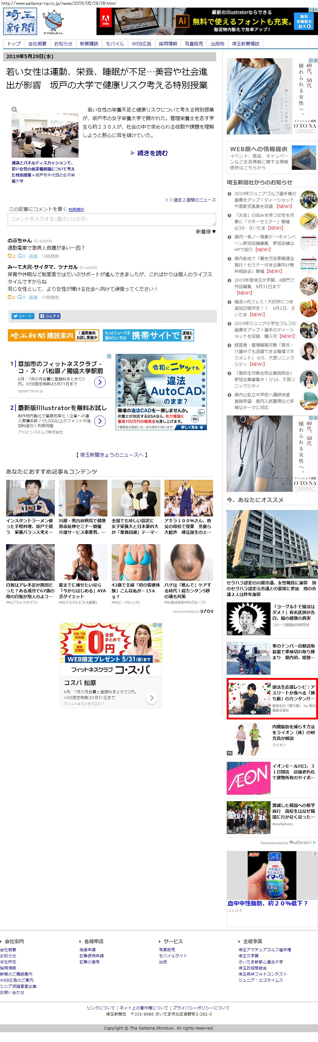 Webメディア 広告枠に赤枠付き
