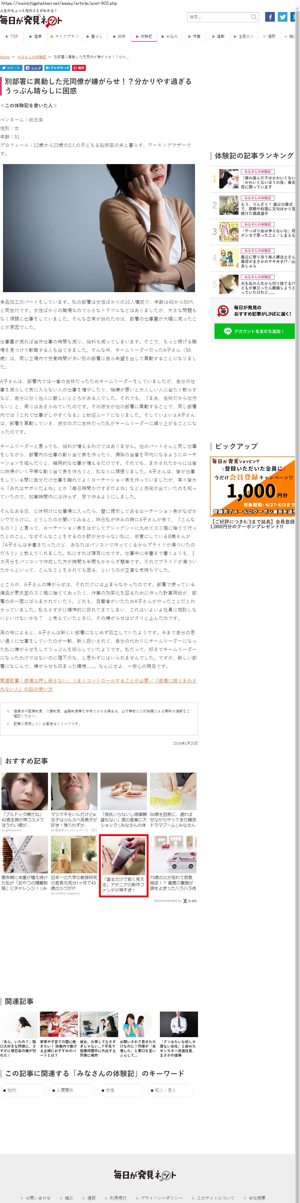 Webメディア 広告枠に赤枠付き