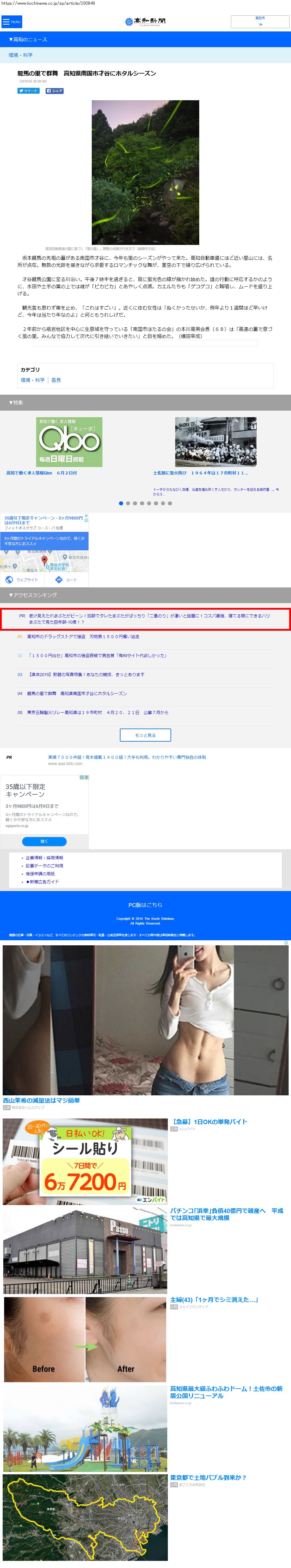 Webメディア 広告枠に赤枠付き