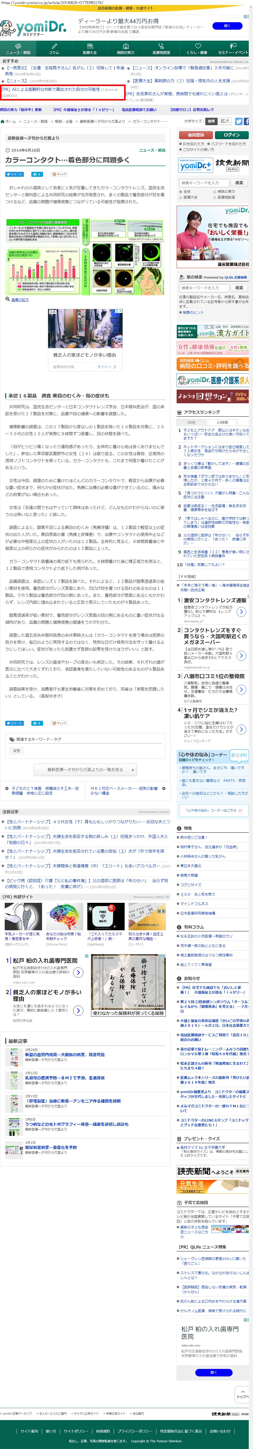 Webメディア 広告枠に赤枠付き
