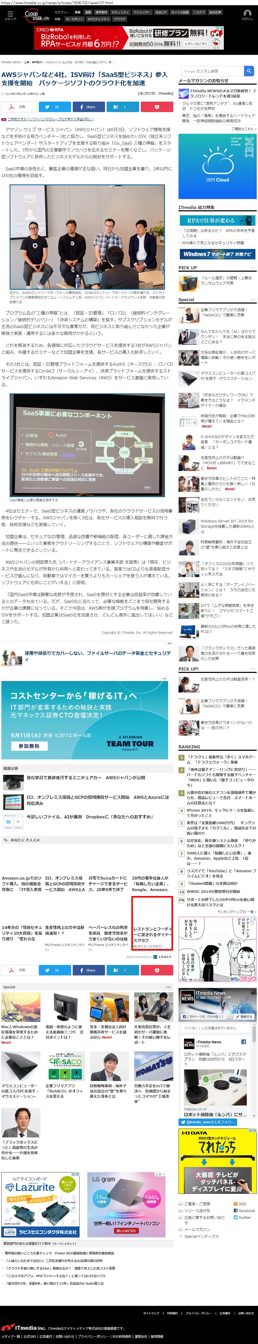 Webメディア 広告枠に赤枠付き
