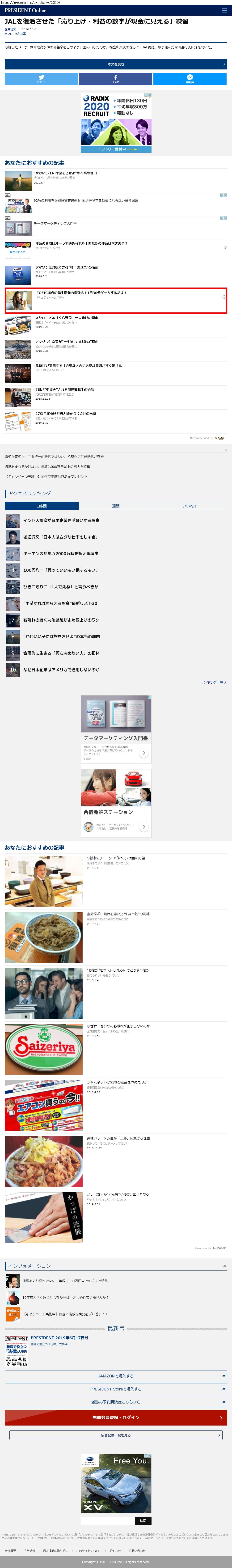 Webメディア 広告枠に赤枠付き