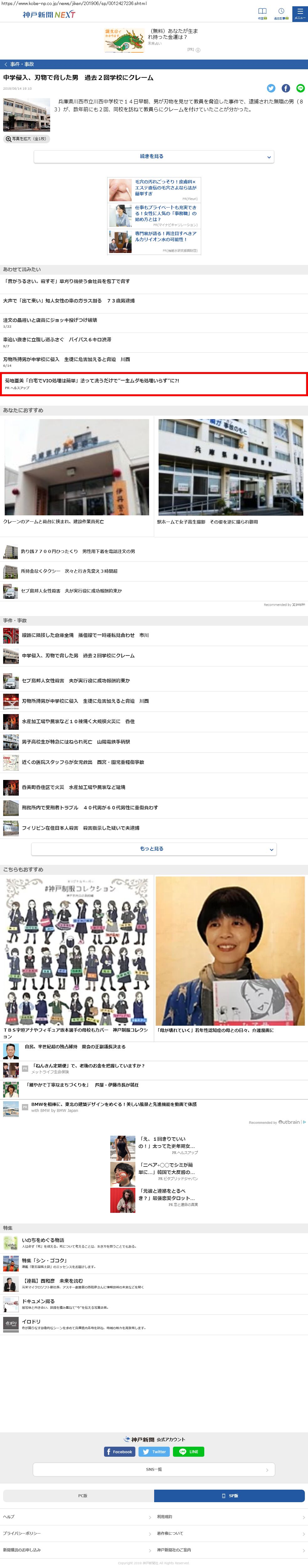 Webメディア 広告枠に赤枠付き