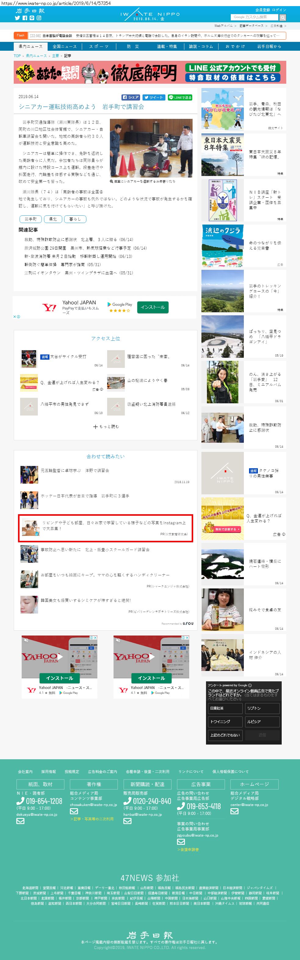 Webメディア 広告枠に赤枠付き