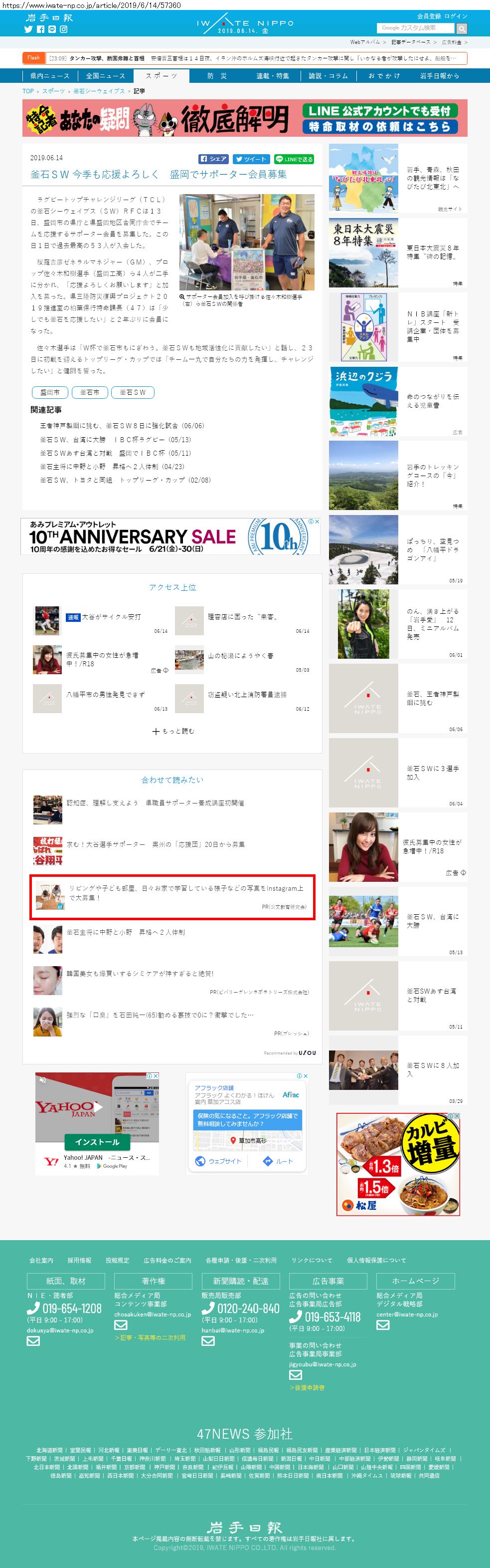 Webメディア 広告枠に赤枠付き