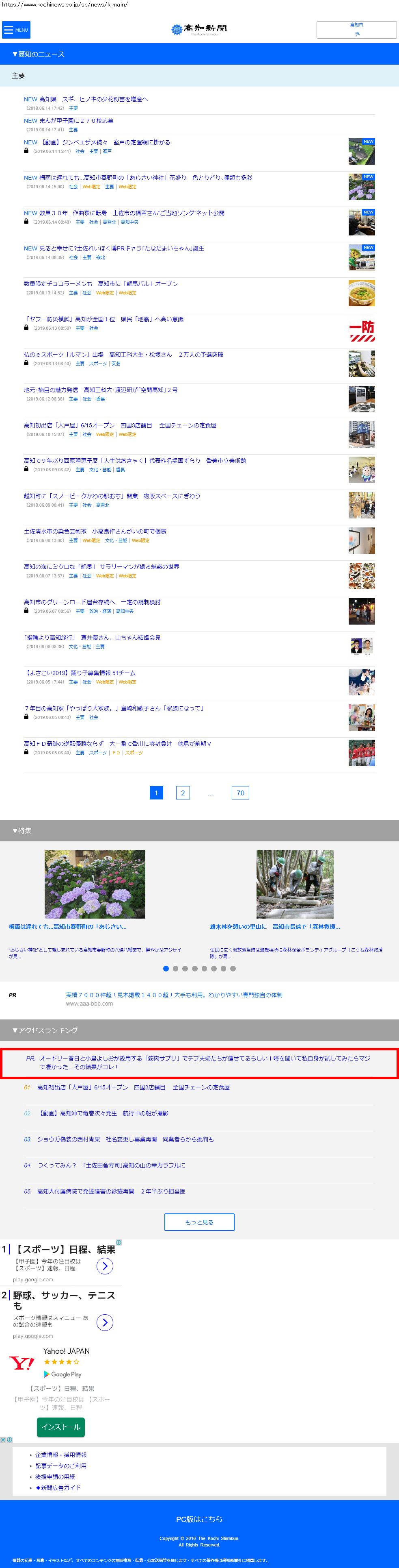 Webメディア 広告枠に赤枠付き