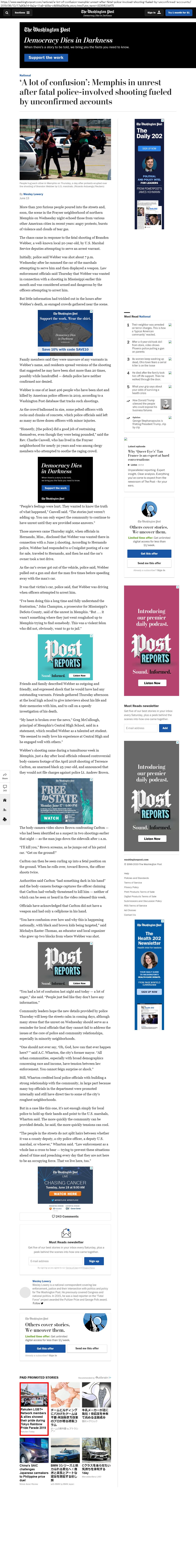 Webメディア 広告枠に赤枠付き