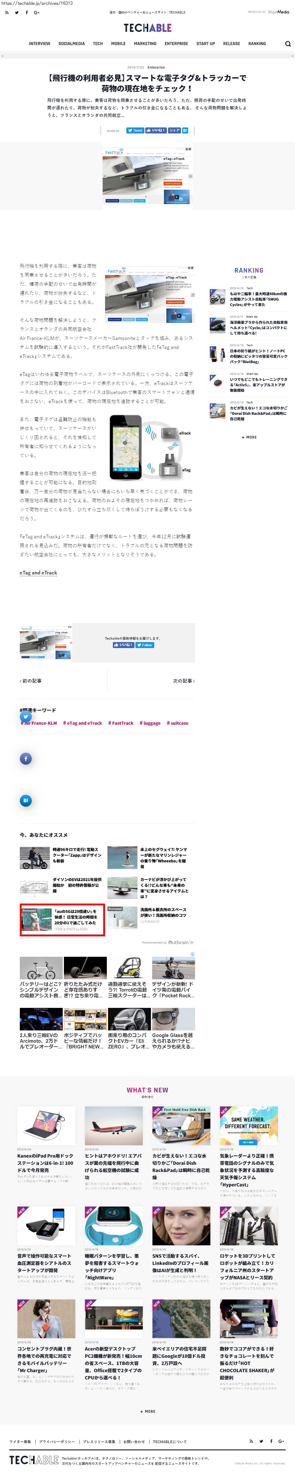 Webメディア 広告枠に赤枠付き