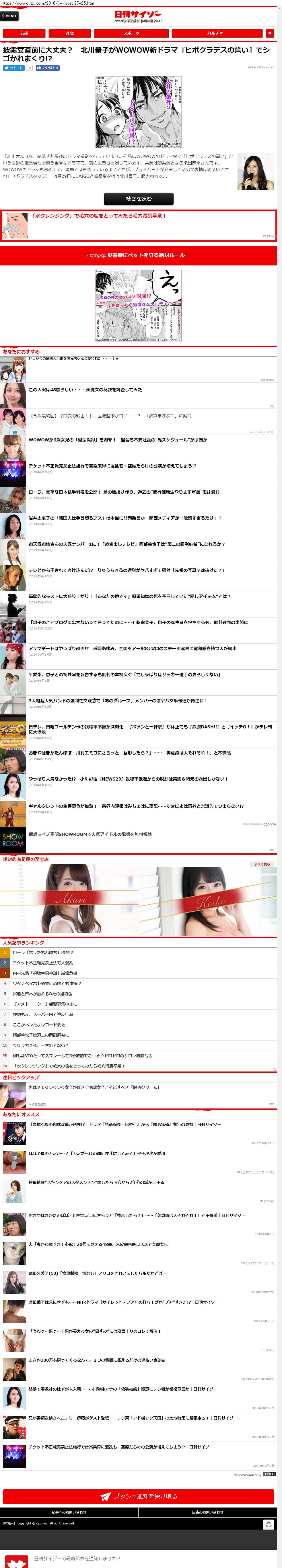 Webメディア 広告枠に赤枠付き