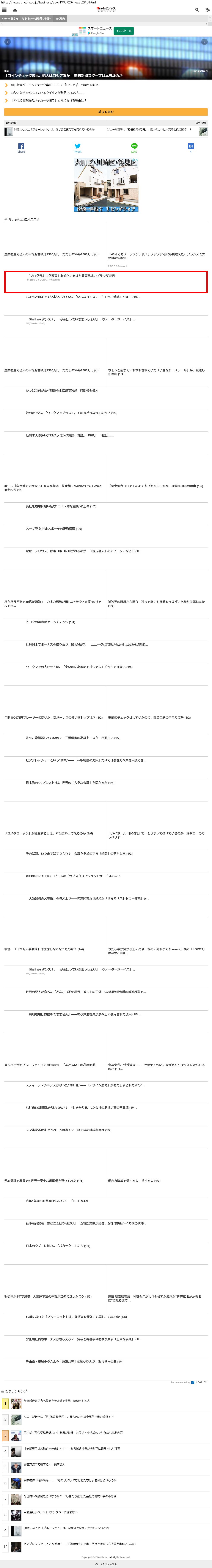 Webメディア 広告枠に赤枠付き