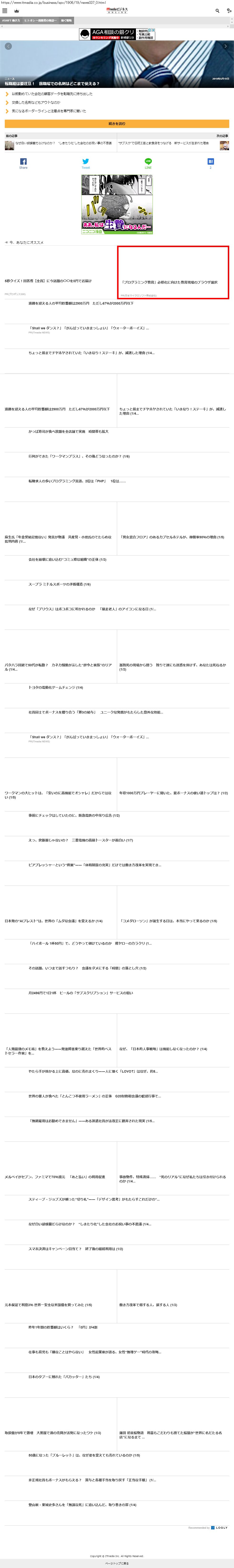 Webメディア 広告枠に赤枠付き