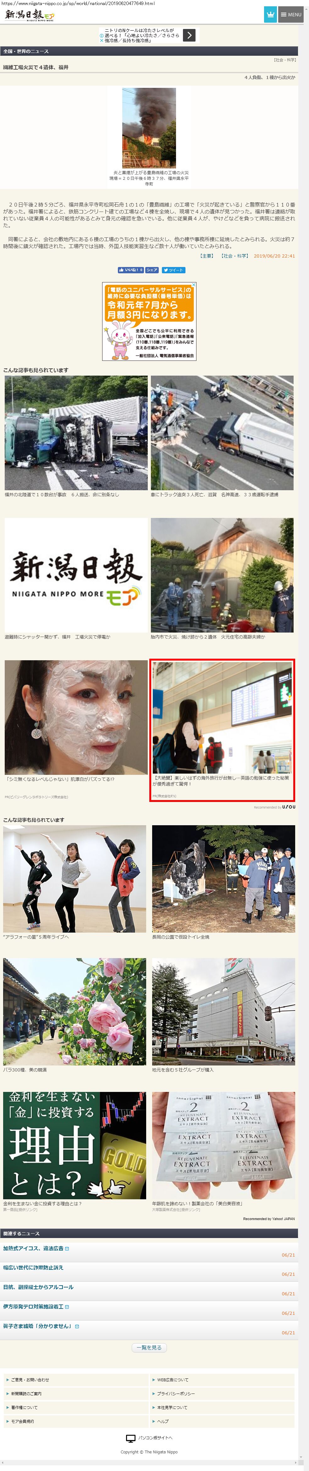 Webメディア 広告枠に赤枠付き