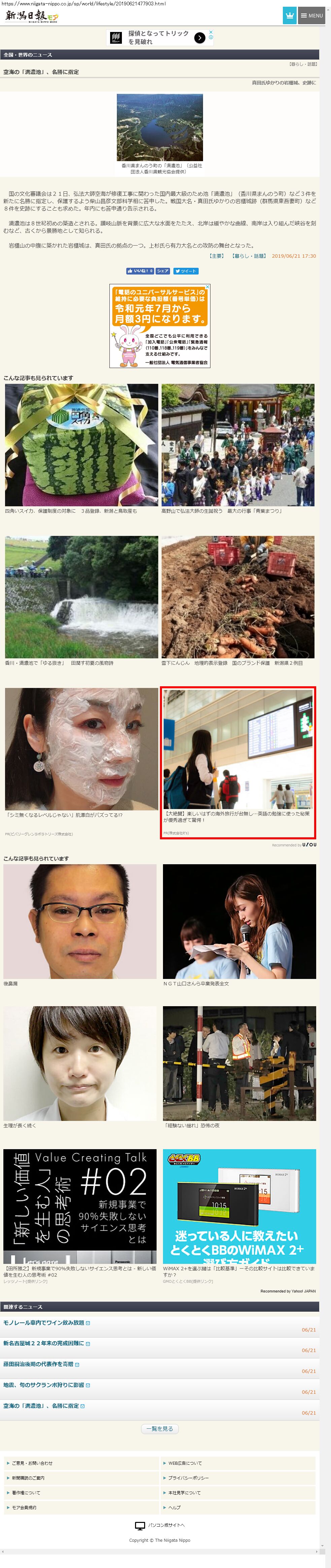 Webメディア 広告枠に赤枠付き