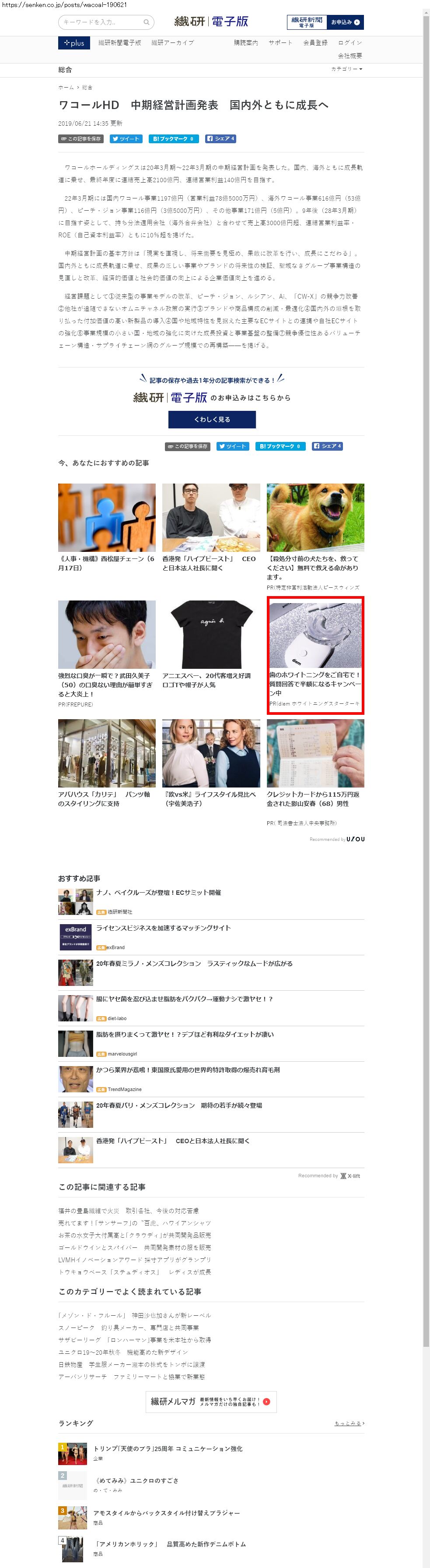 Webメディア 広告枠に赤枠付き