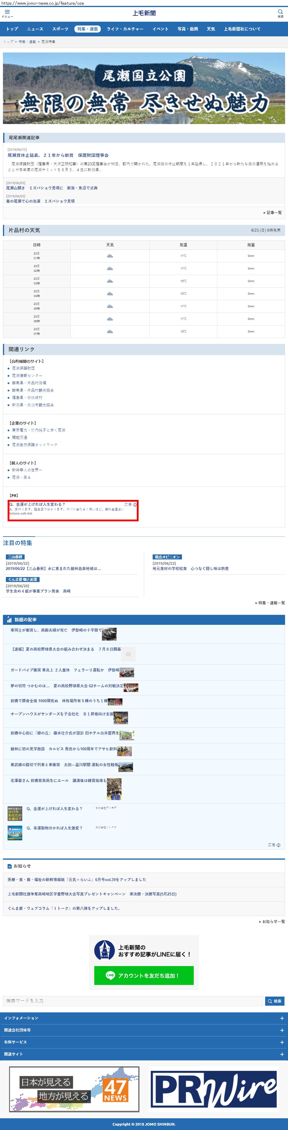 Webメディア 広告枠に赤枠付き