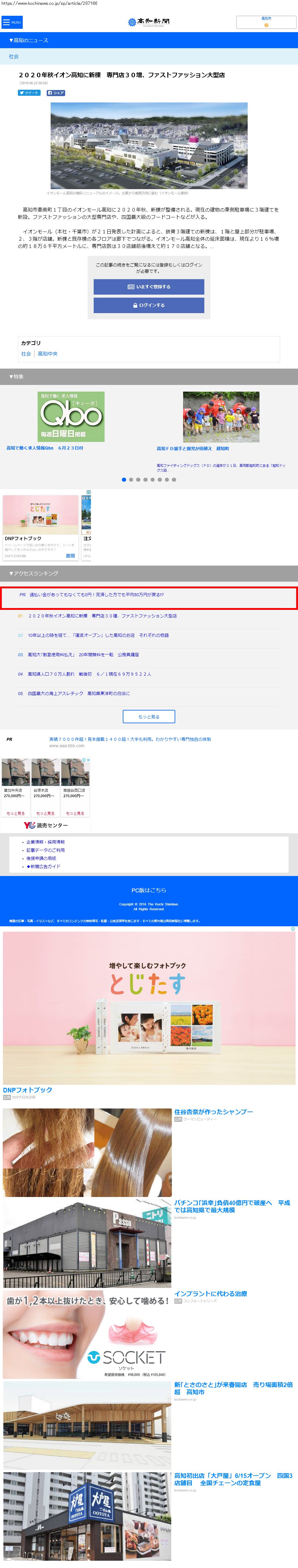 Webメディア 広告枠に赤枠付き