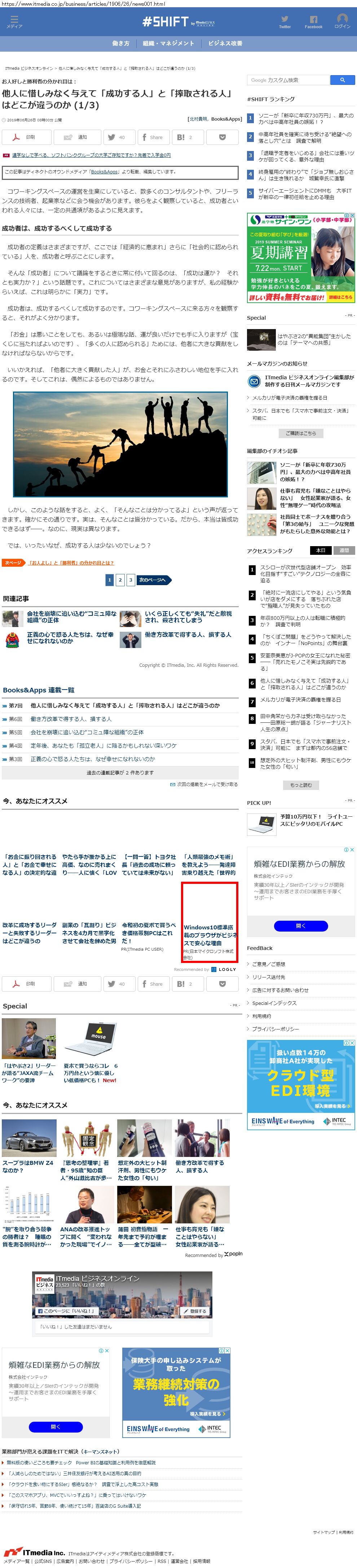 Webメディア 広告枠に赤枠付き