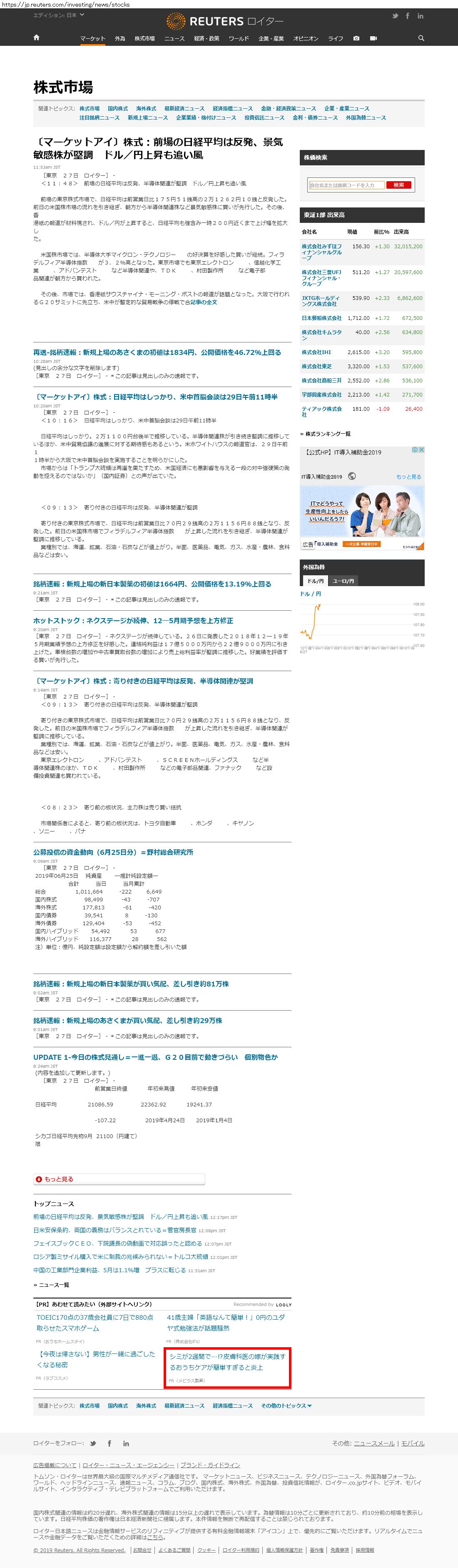 Webメディア 広告枠に赤枠付き