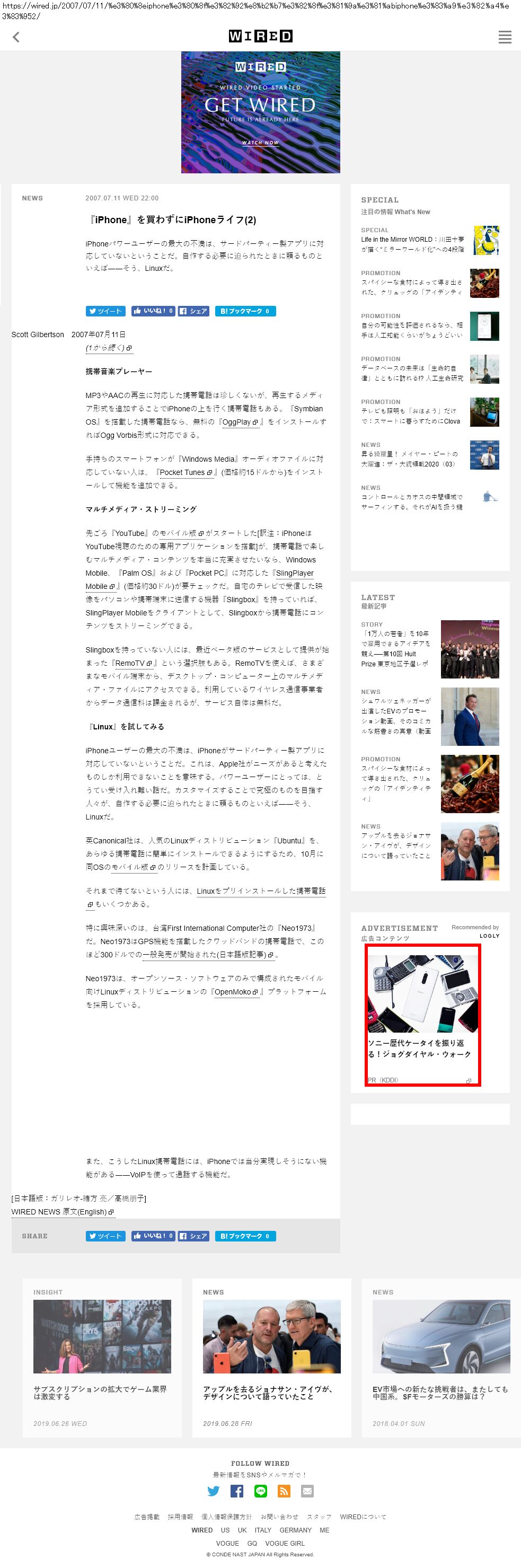 Webメディア 広告枠に赤枠付き