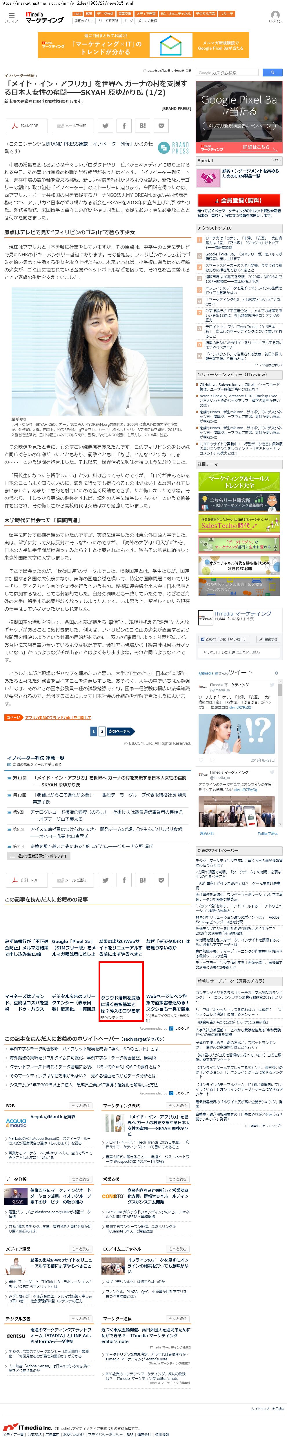 Webメディア 広告枠に赤枠付き