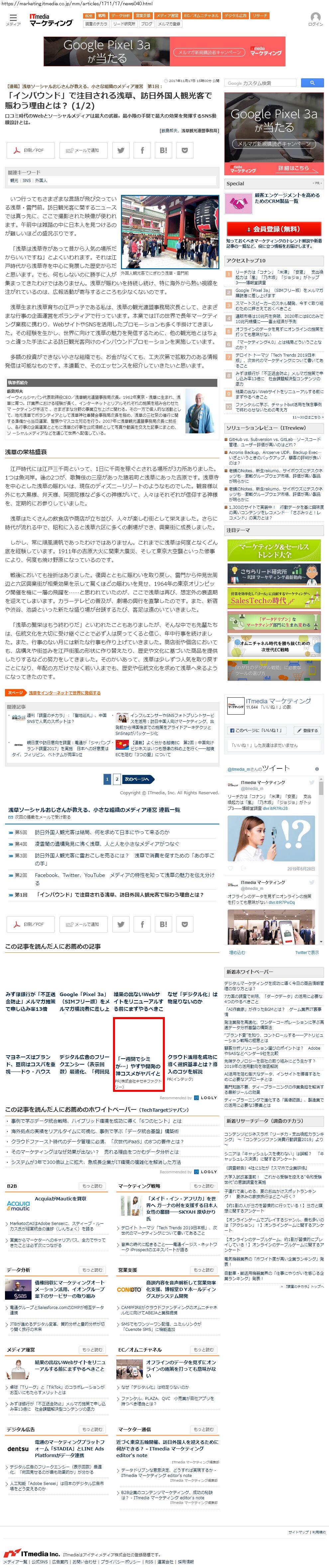 Webメディア 広告枠に赤枠付き