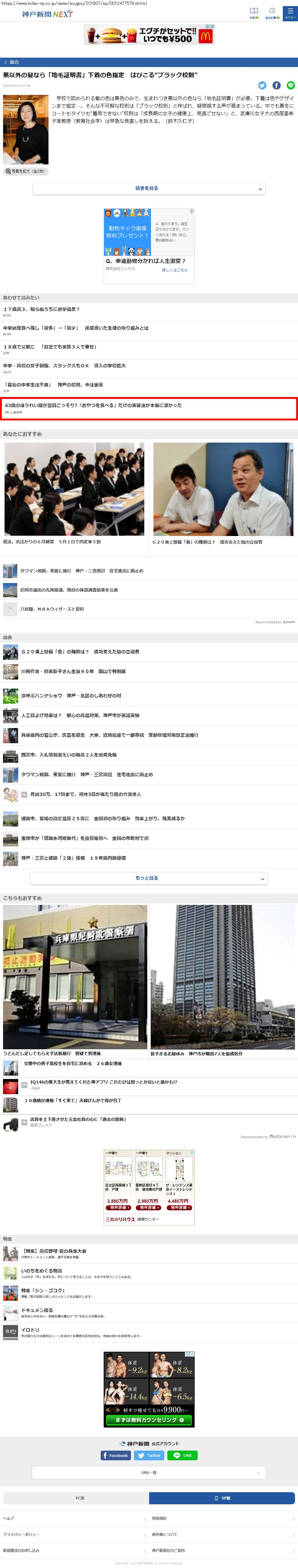 Webメディア 広告枠に赤枠付き