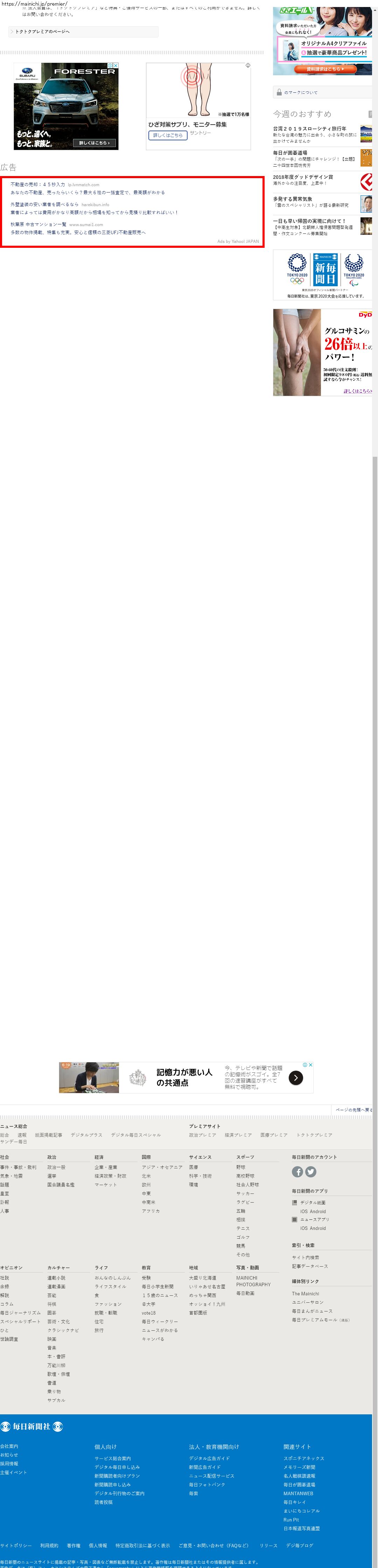 Webメディア 広告枠に赤枠付き