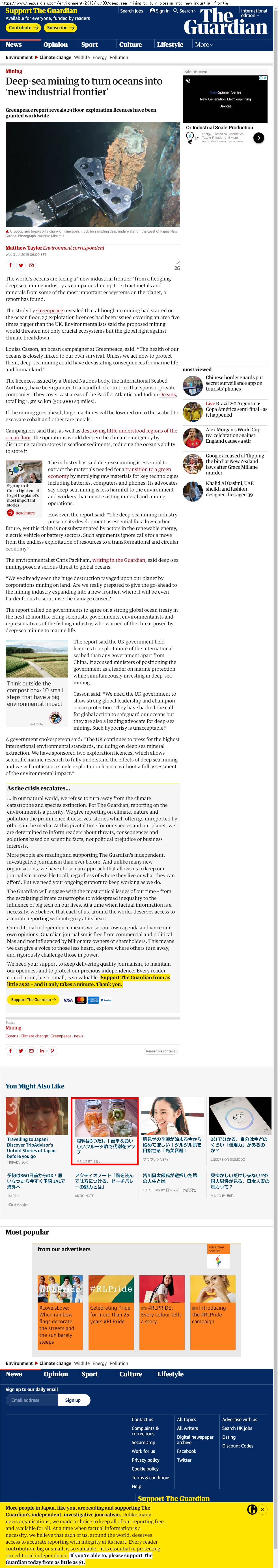 Webメディア 広告枠に赤枠付き