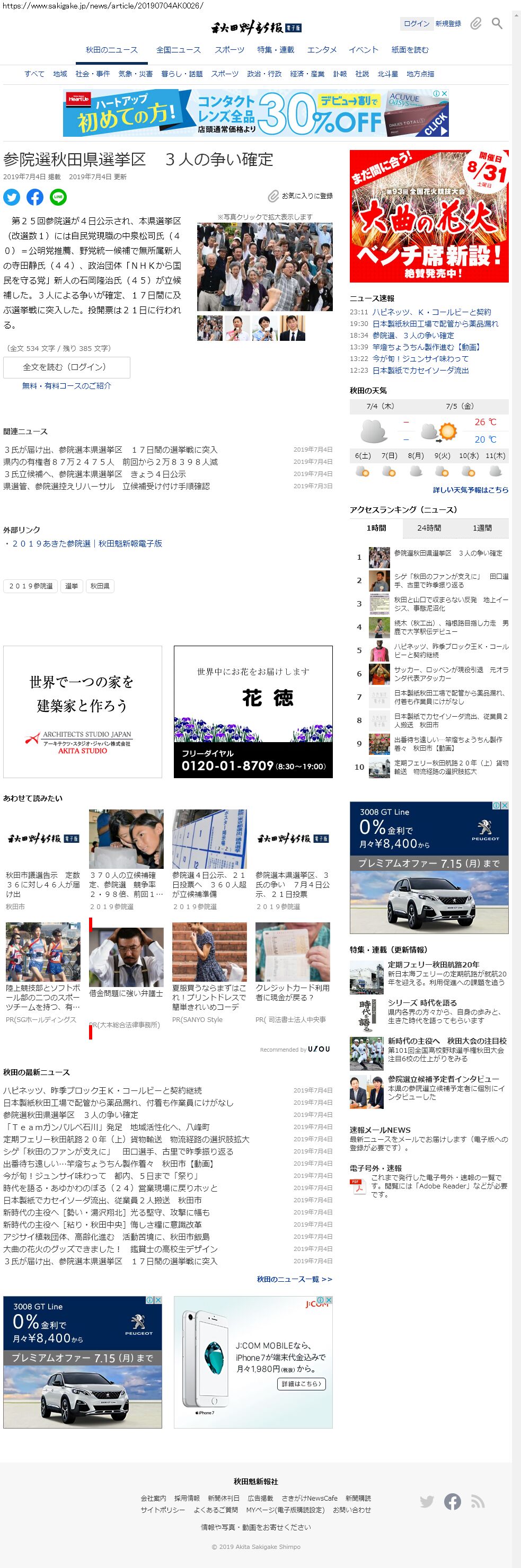 Webメディア 広告枠に赤枠付き