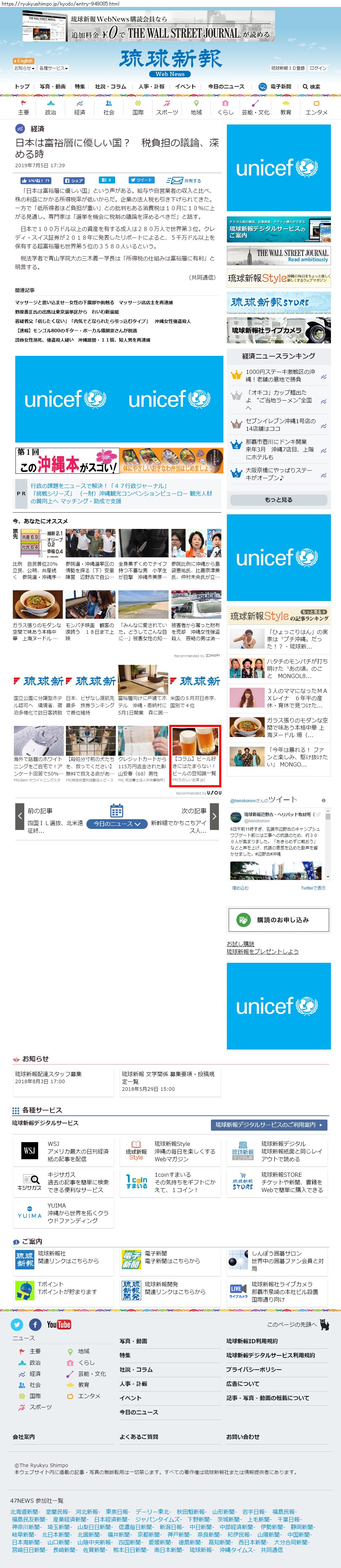 Webメディア 広告枠に赤枠付き