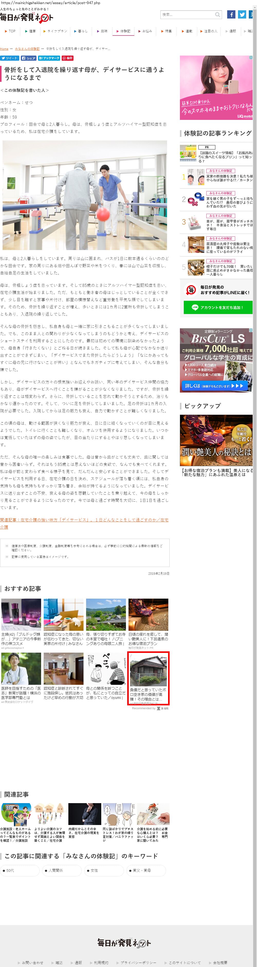 Webメディア 広告枠に赤枠付き