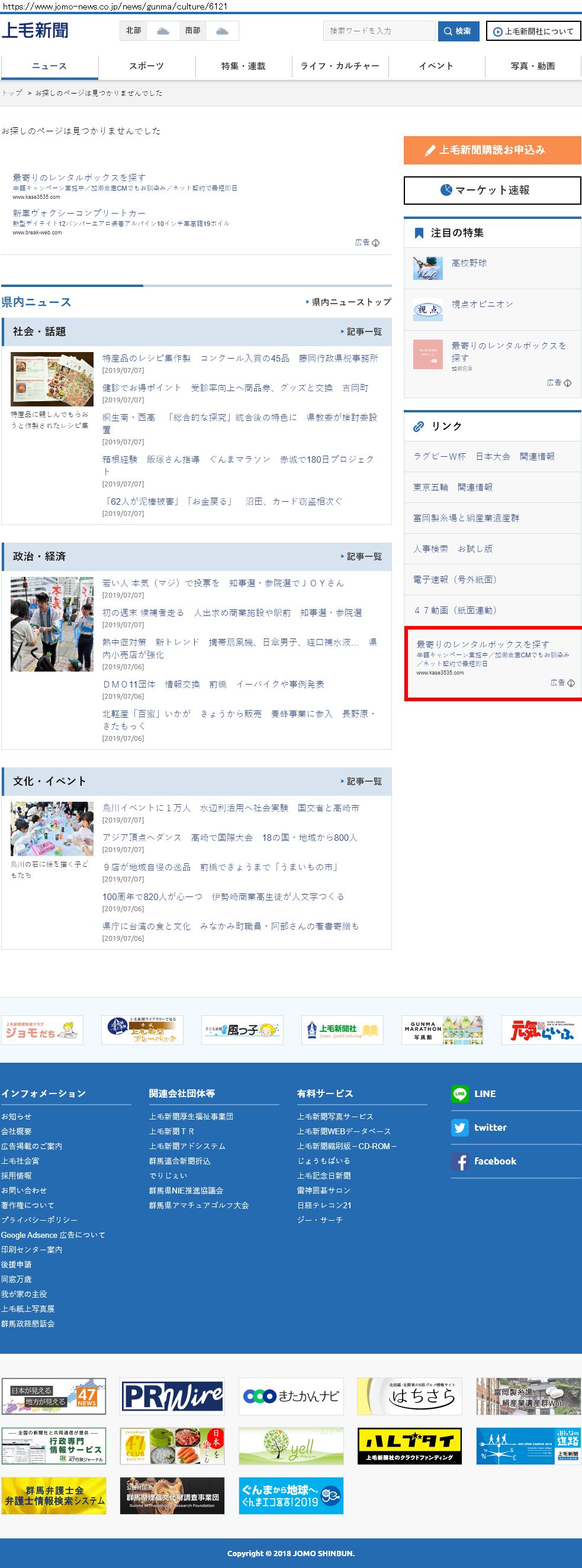 Webメディア 広告枠に赤枠付き