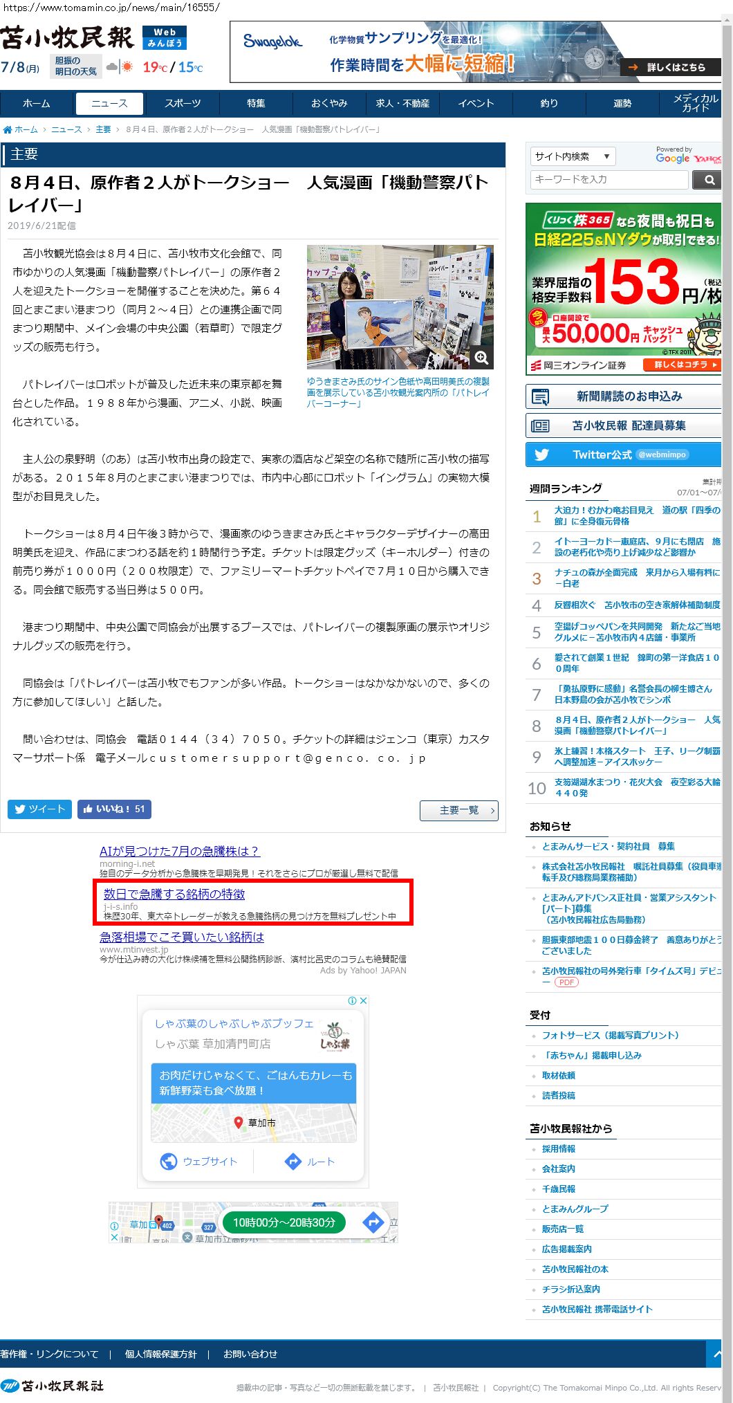 Webメディア 広告枠に赤枠付き
