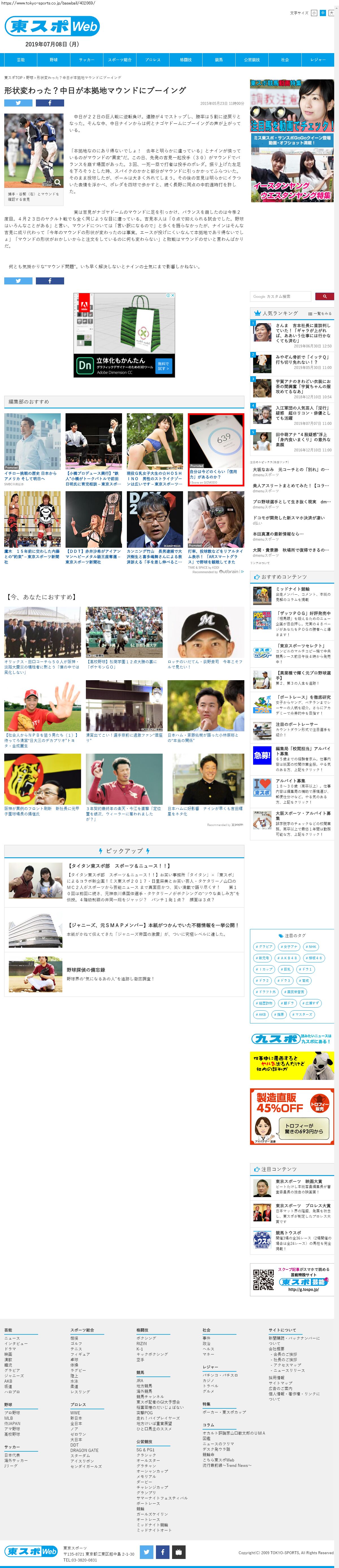 Webメディア 広告枠に赤枠付き