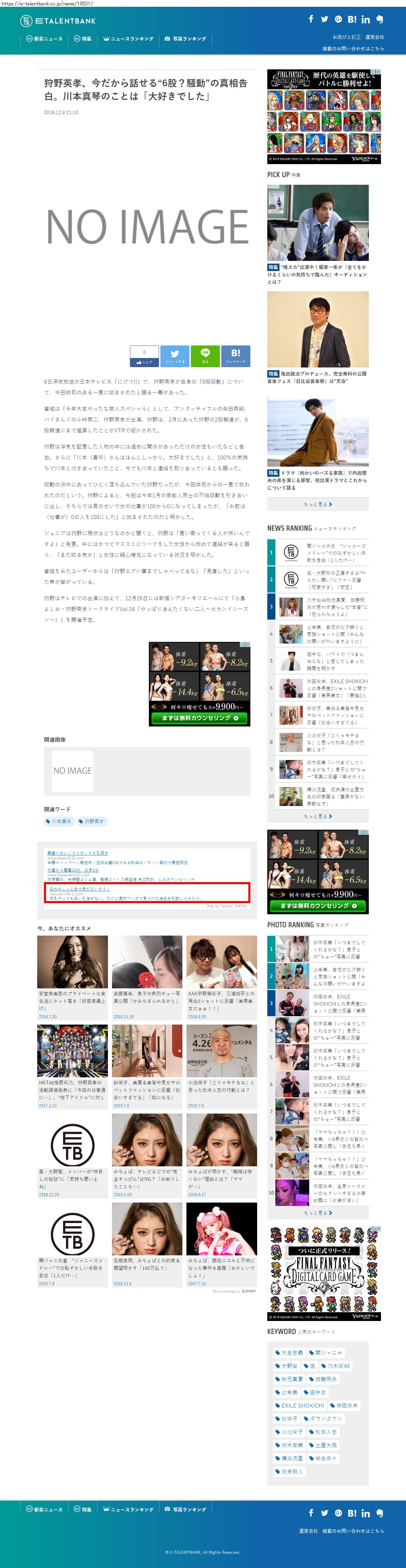Webメディア 広告枠に赤枠付き