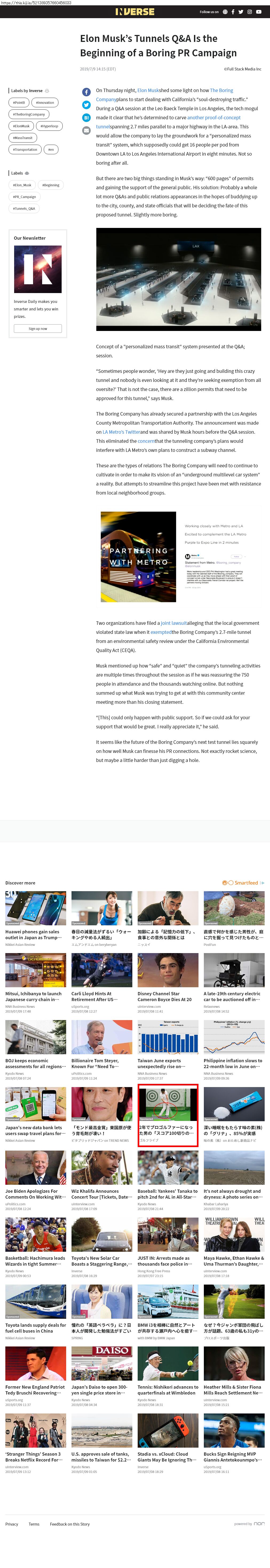 Webメディア 広告枠に赤枠付き